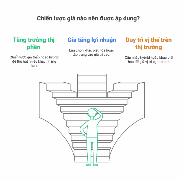 - Tăng trưởng thị phần: Hướng đến chiến lược giá thấp hoặc hybrid để thu hút nhiều khách hàng.