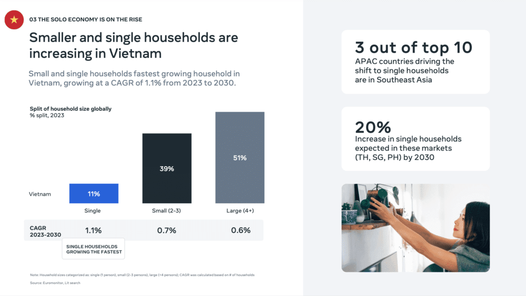 Các hộ gia đình nhỏ và đơn thân đang gia tăng nhanh chóng tại Việt Nam, tạo ra những thay đổi trong nhiều lĩnh vực từ tiêu dùng đến dịch vụ. Điều này đòi hỏi các doanh nghiệp phải điều chỉnh chiến lược tiếp cận để phục vụ nhu cầu của những khách hàng cá nhân này.