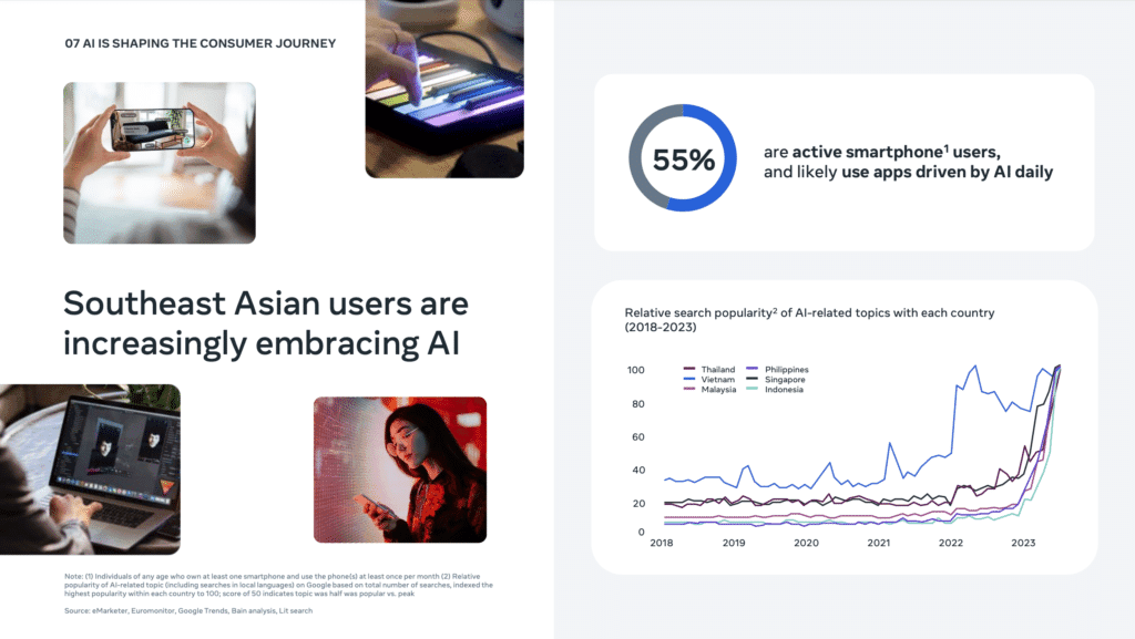 Khu vực Đông Nam Á, với dân số trẻ và năng động, đang trở thành điểm nóng của sự chuyển đổi số và tăng trưởng tiêu dùng. Báo cáo “SYNC Southeast Asia 2023” do Meta, Bain & Company và DSG Consumer Partners phát hành mang đến cái nhìn sâu sắc về xu hướng tiêu dùng và cơ hội kinh doanh tại khu vực này.